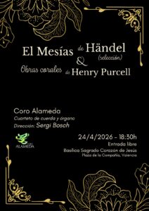 El viernes 24 de abril a las 18h 30’ repetiremos el concierto del día 17 pero en la Basílica del Sagrado Corazón de Jesús situado en la plaza de la Compañía, justo detrás de la Lonja. Estaremos acompañados por el mismo cuarteto de cuerda y el mismo organista y si en aquella ocasión el concierto fue en una preciosa iglesia neogótica, ahora se cantará en una no menos preciosa iglesia barroca. ¡No se lo pierdan!